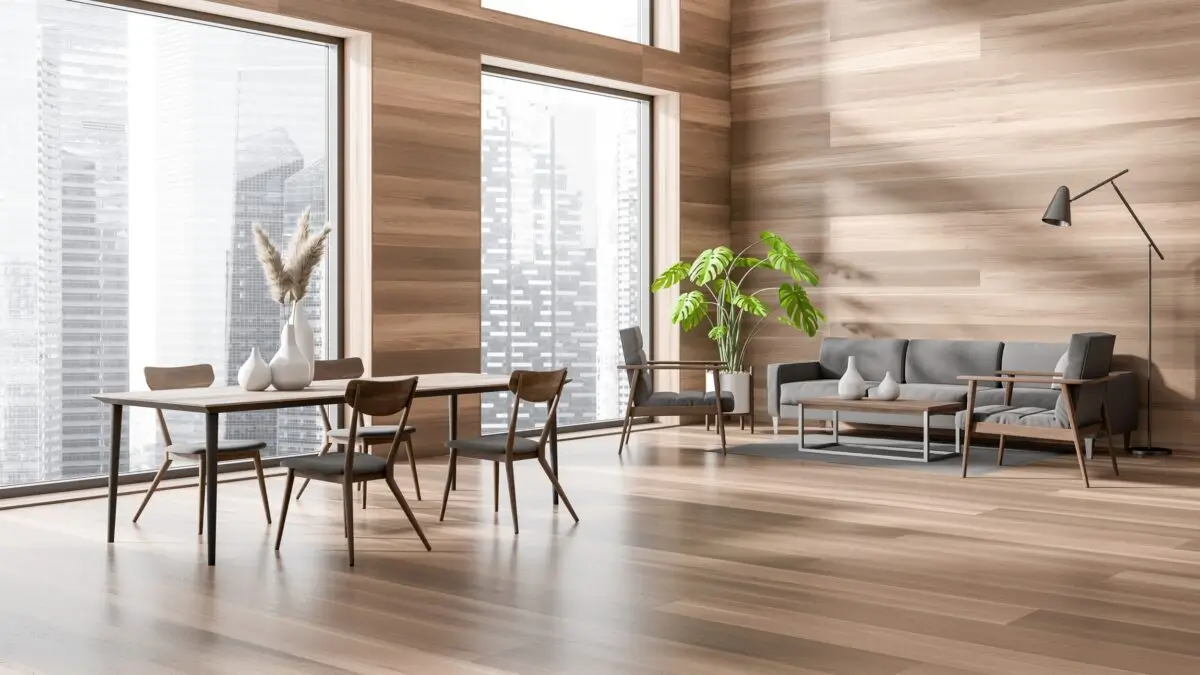 Sterke, slijtvaste vloeren met natuurlijke houtstructuren in diverse tinten.